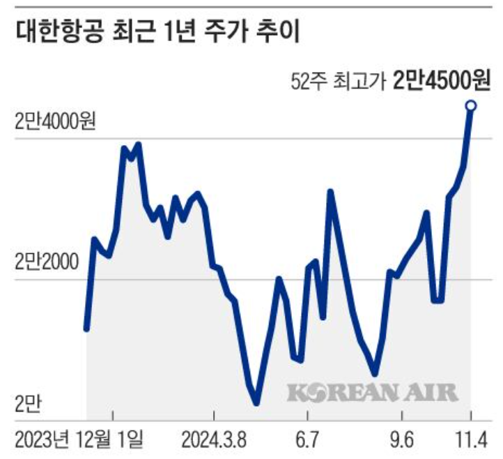 2024년 하반기 들어 대한항공의 주가는 2만 원대 중반을 유지하고 있으며, 2025년 상반기 이후에는 최대 3만 원대 초반까지 상승할 수 있다는 전망도 일부 증권사에서 제시하고 있습니다.
