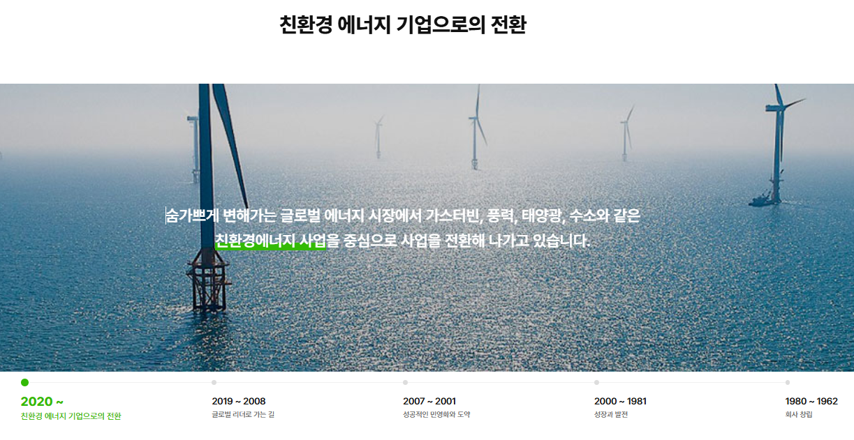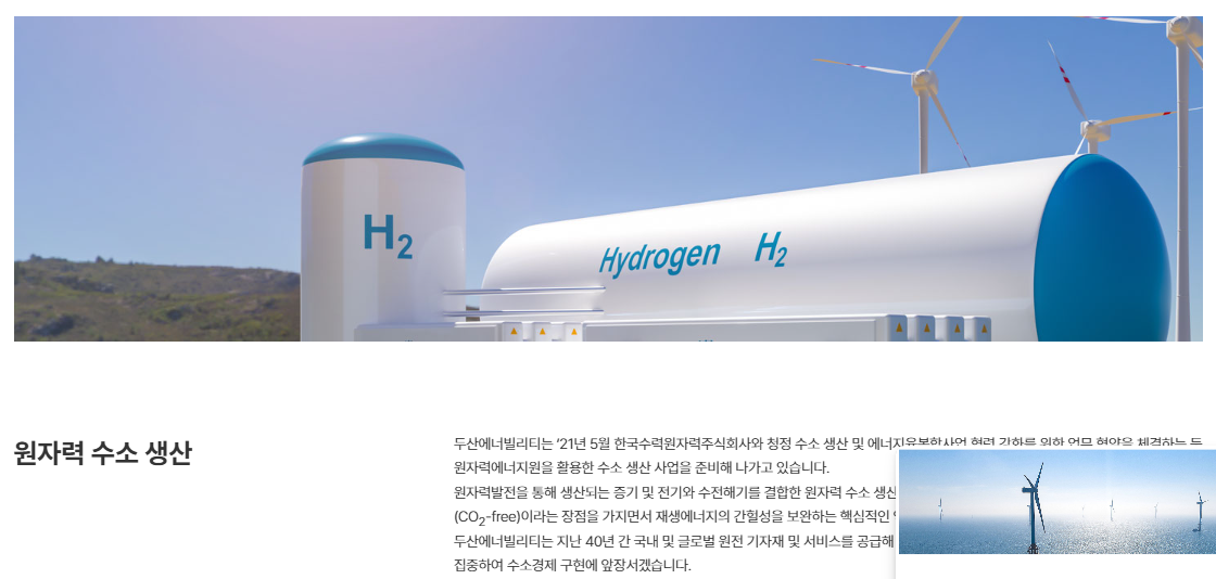 두산 연혁, CEO 메시지 / 출처: 두산에너빌리티