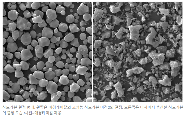 2008년, 애경케미칼의 연구팀은 방수에 쓰이는 발포우레탄폼을 만드는 새로운 방법을 실험하고 있었습니다. 폴리우레탄 수지에 발포제를 넣고, 다양한 온도로 가열하며 실험을 반복하던 중 우연히 특이한 현상을 발견하게 됩니다. 특정 온도에 도달했을 때 수지가 타면서 검은 물질이 남았고, 자세히 들여다보니 그 안에는 탄소만 결정 상태로 남아 있었습니다. 바로 ‘하드카본’이라는 물질이었죠. 그 순간부터 연구팀은 이 물질이 배터리 음극재로서 가능성이 있다는 데 눈을 떴고, 본격적인 연구를 시작하게 됩니다.