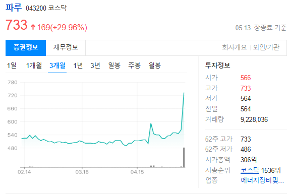 • 파루는 태양광 테마주로 단기 수급 이슈에 민감